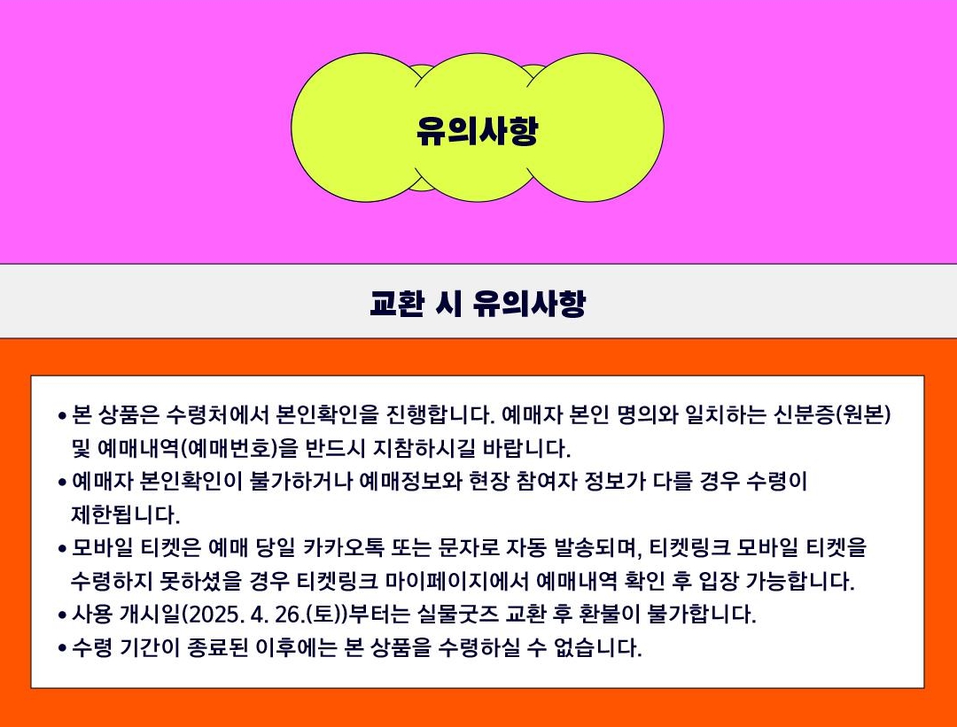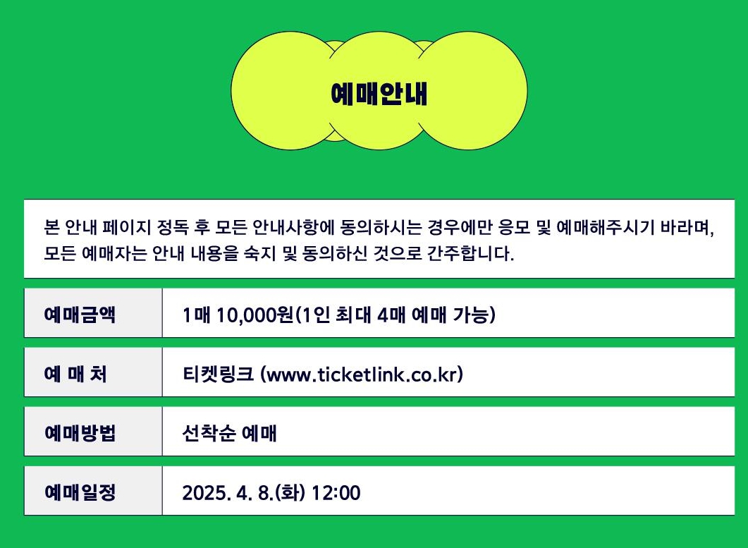 | 온라인 사전예약 | 4월 초 시작, 조기 마감 가능 / 입장권+굿즈 패키지 구성 |