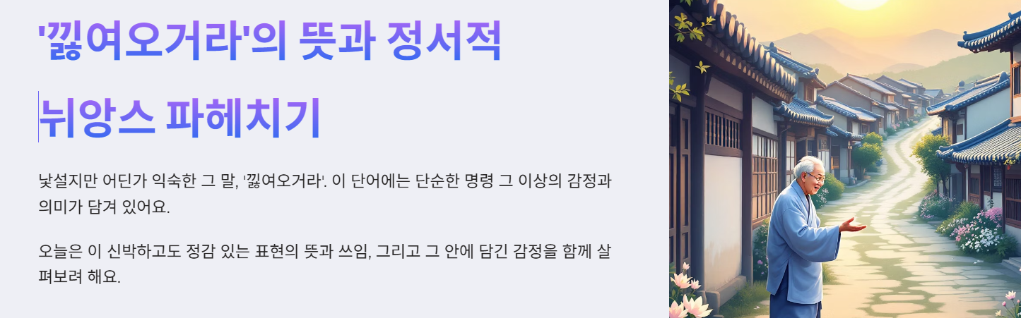 들어본 적 있으신가요? 낯설지만 어딘가 익숙한 그 말, ‘낋여오거라’. 이 단어에는 단순한 명령 그 이상의 감정과 의미가 담겨 있어요.