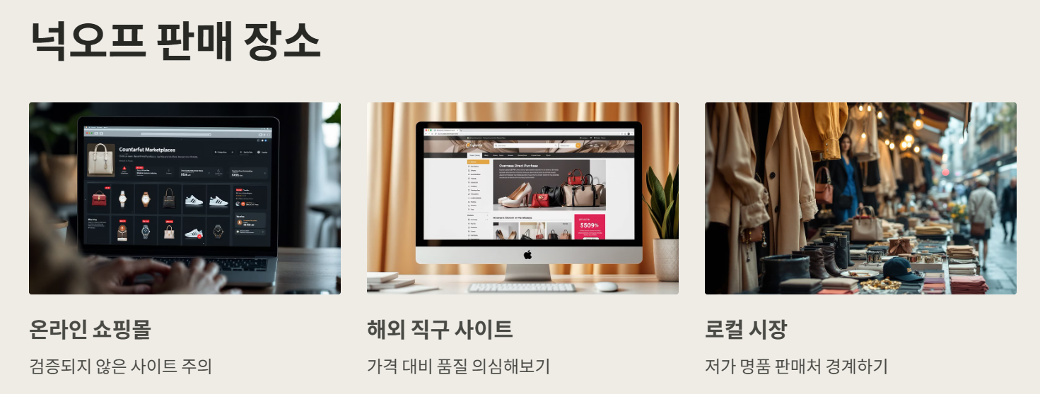 쇼핑하다 보면 진짜와 가짜를 구분하기 어려울 때가 많죠. 특히 온라인에선 더더욱요. 아래 리스트처럼 몇 가지만 기억해두면 넉오프 제품을 피해갈 수 있어요.