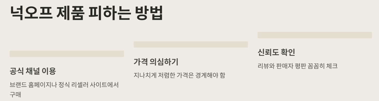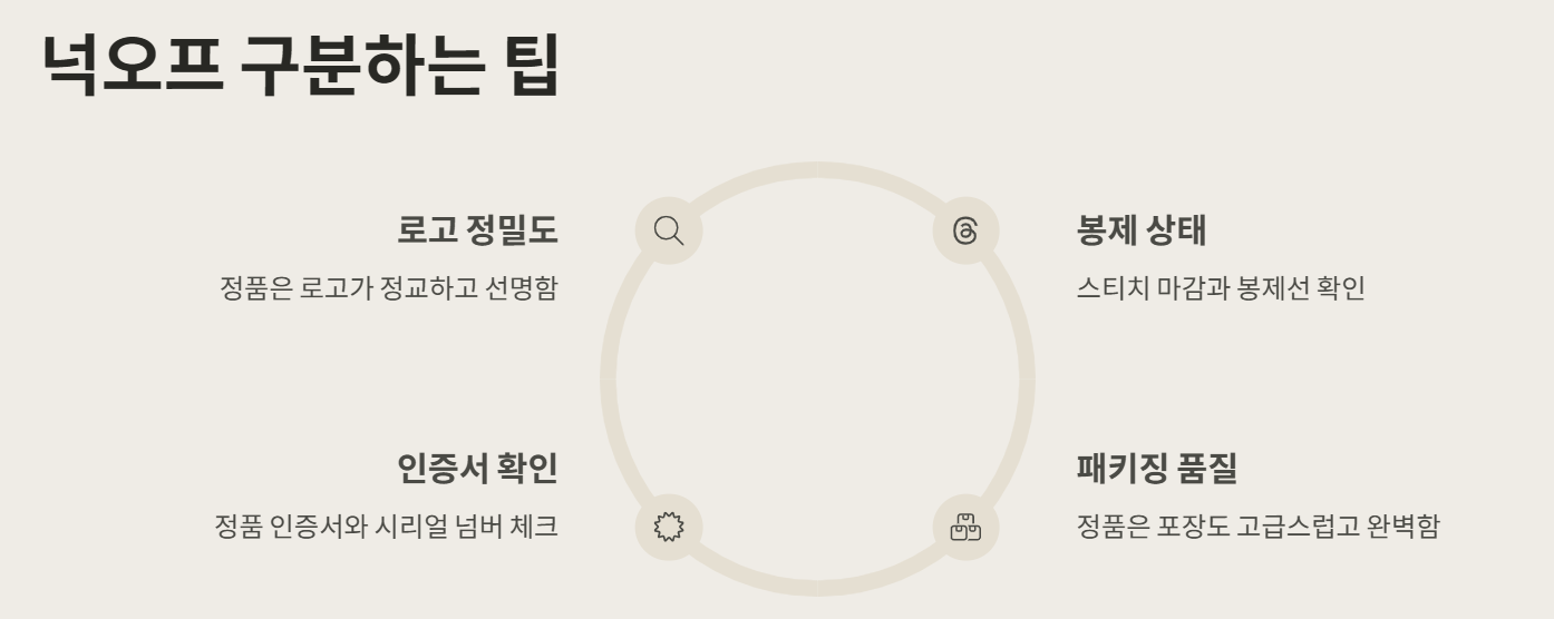 - “인터넷에 넉오프 제품이 너무 많아서 진짜 구별이 힘들어.”