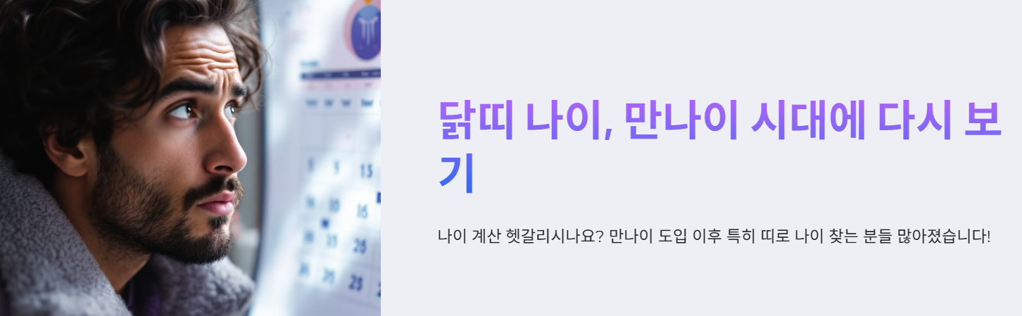 "나 몇 살이지?" 요즘 들어 이런 질문, 한 번쯤 해보셨죠? 만나이 도입 이후 헷갈리는 나이 계산, 특히 띠로 나이 찾는 분들 많아졌습니다!