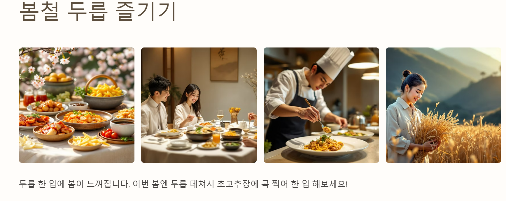 두릅 한 입에 봄이 느껴진다는 말, 해보신 분들은 아실 거예요. 이왕 먹는 거, 제대로 알고 더 맛있게 먹으면 그 기쁨은 두 배가 되죠. 여러분도 이번 봄엔 두릅 데쳐서 초고추장에 콕 찍어 한 입 해보세요. 아, 그리고 혹시 다른 봄나물 요리도 궁금하시면 댓글로 알려주세요! 같이 봄 제철 식탁을 풍성하게 채워봐요.