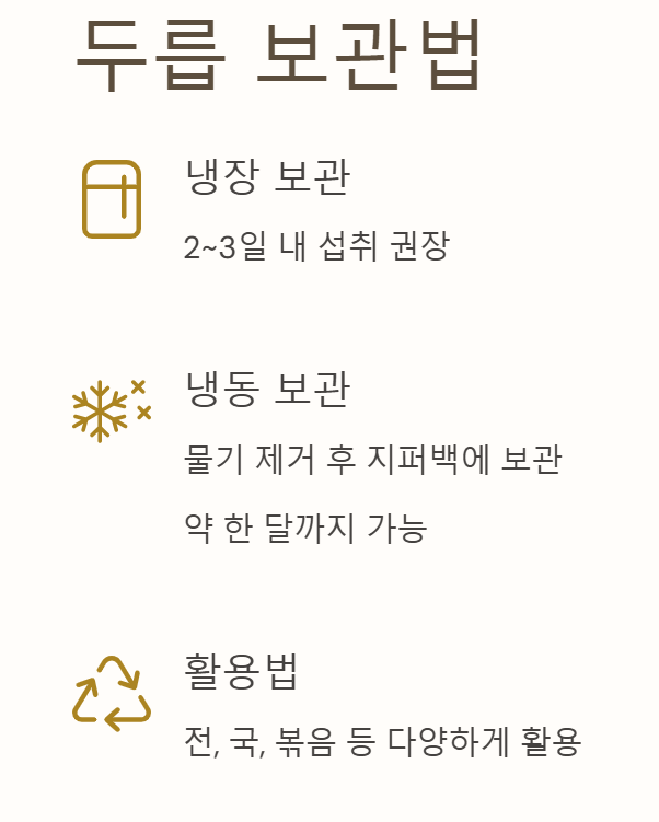 데친 두릅은 단순히 무침만 생각하기 쉽지만, 다양한 방식으로 즐길 수 있어요. 요즘엔 튀김도 인기고, 된장국에 넣어도 정말 잘 어울리죠. 아래 표로 정리해봤어요.