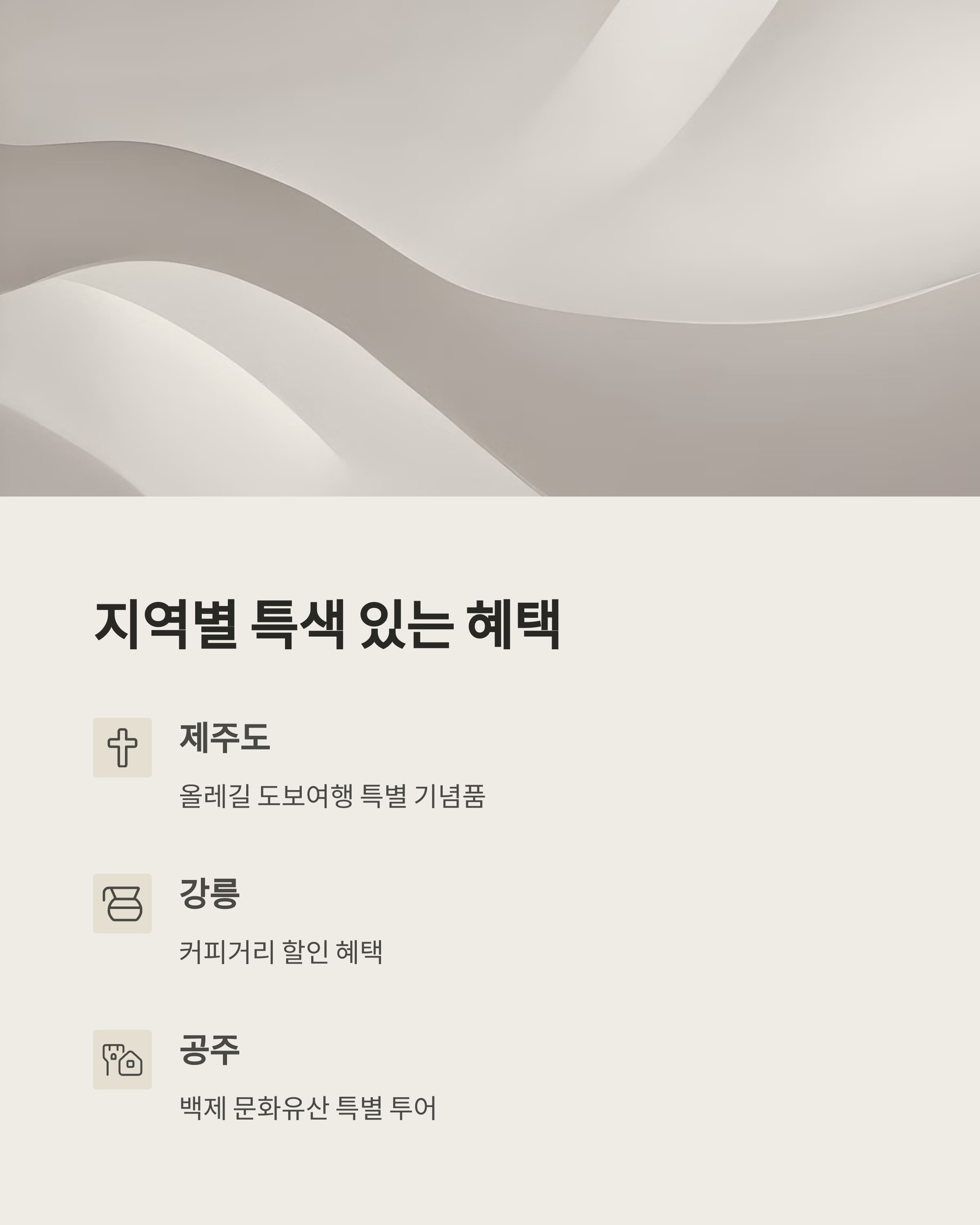 - 🎫 관광지 입장료 할인 (예: 공주 공산성, 순천만 습지)