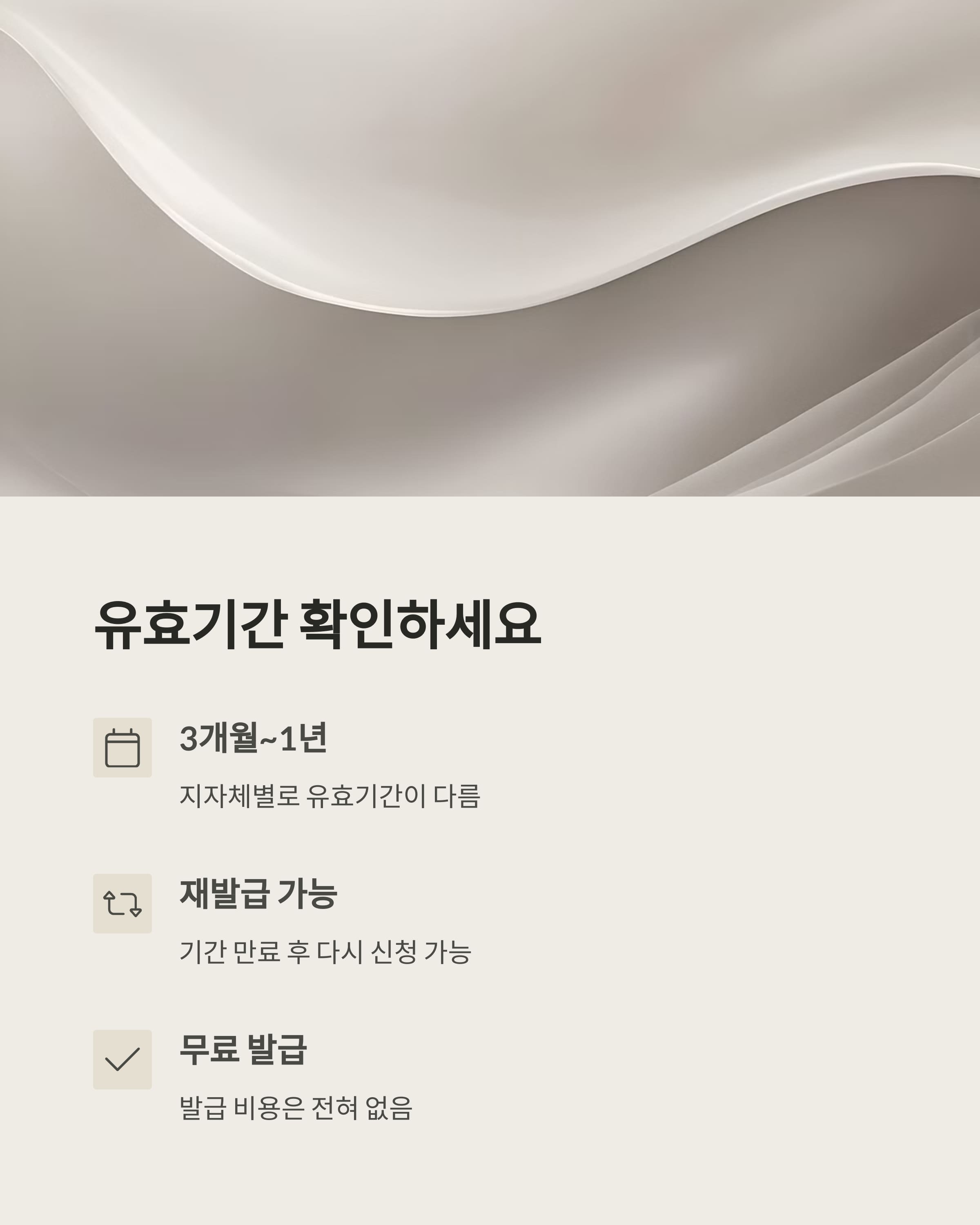 - 단, 지자체별 발급 기준 및 유효기간이 상이하므로 꼭 확인 필요