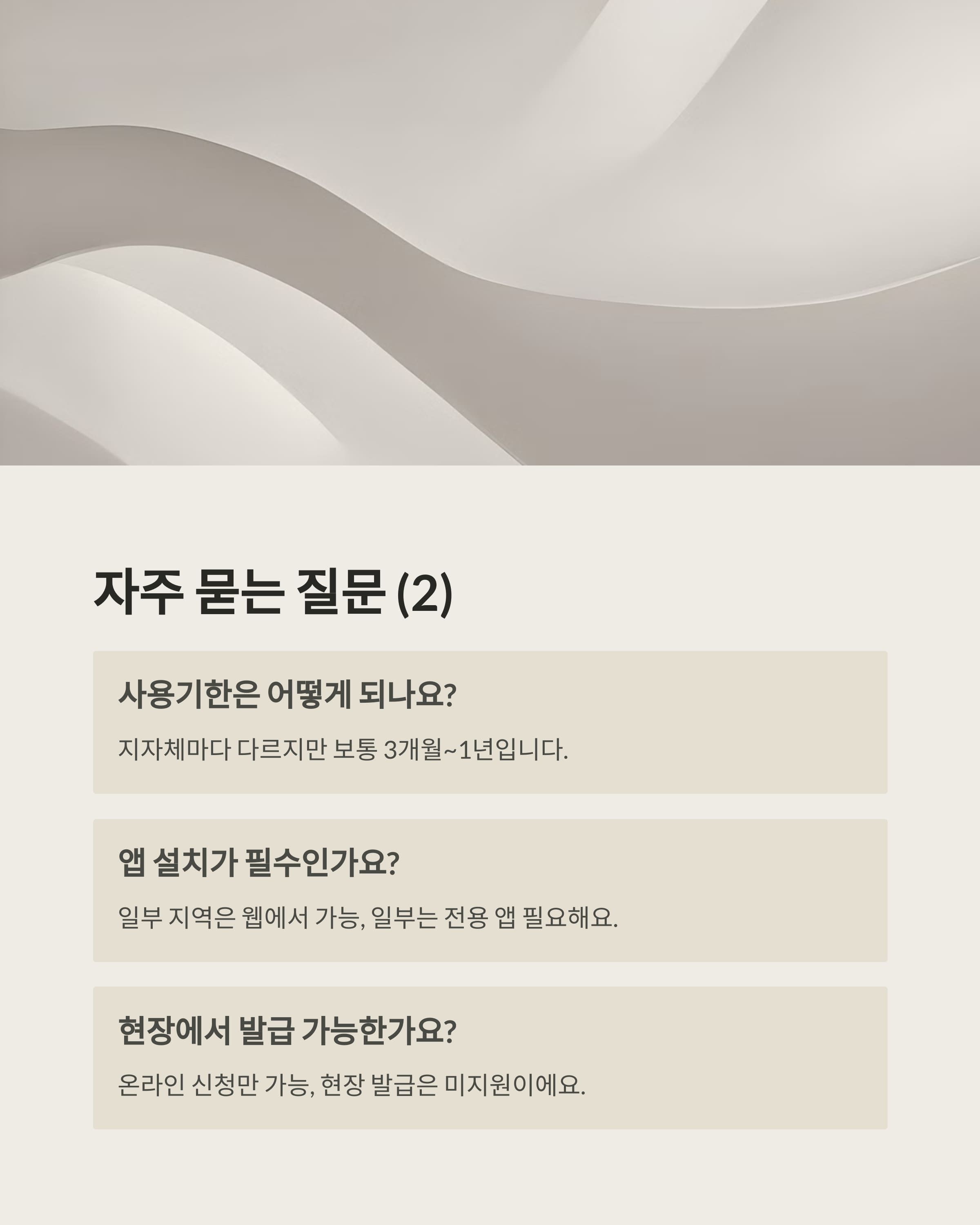 - 일부 지자체는 QR코드, 앱 카드 형태 병행 사용 가능
