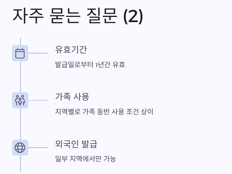 일부 지역에서는 1인 발급으로 가족 동반 사용 가능해요. 단, 사전에 확인은 필수입니다.