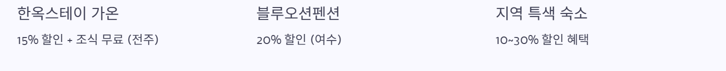 | 숙소명 | 혜택 내용 | 지역 |