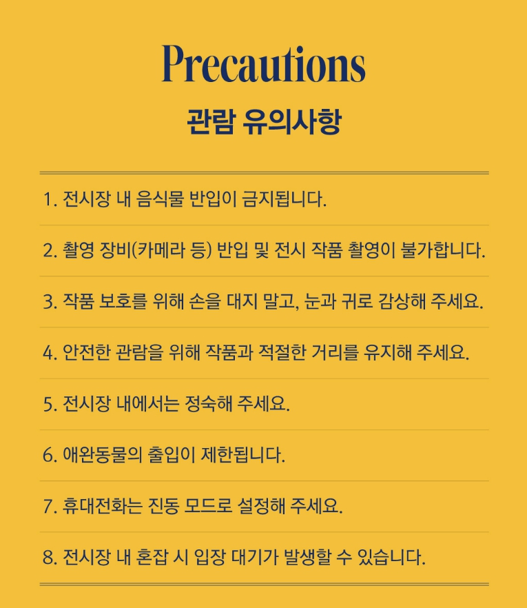 - 전시 관람은 시간 여유를 두고 천천히 감상하는 걸 추천드려요.