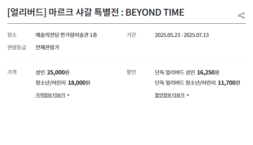 | 관람시간 | 오전 10시 ~ 오후 7시 (입장 마감 오후 6시 / 월요일 휴관) |
