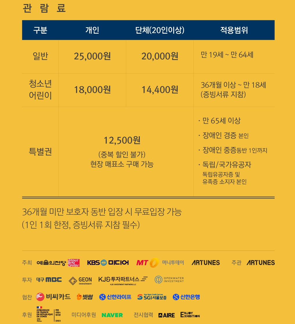 전시 오픈 전, 가장 먼저 혜택을 누릴 수 있는 기회! 4월 12일까지 단 4일간 진행되는 얼리버드 40% 할인은 정말 꿀템이에요. 특히 미술 전시 자주 다니시는 분들이라면 가격 혜택이 상당히 크겠죠? 사용 가능한 기간도 넉넉해서 계획 짜기도 좋습니다.