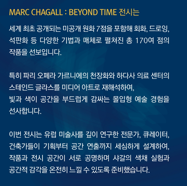 | 전시명 | 마르크 샤갈 특별전: Beyond Time |