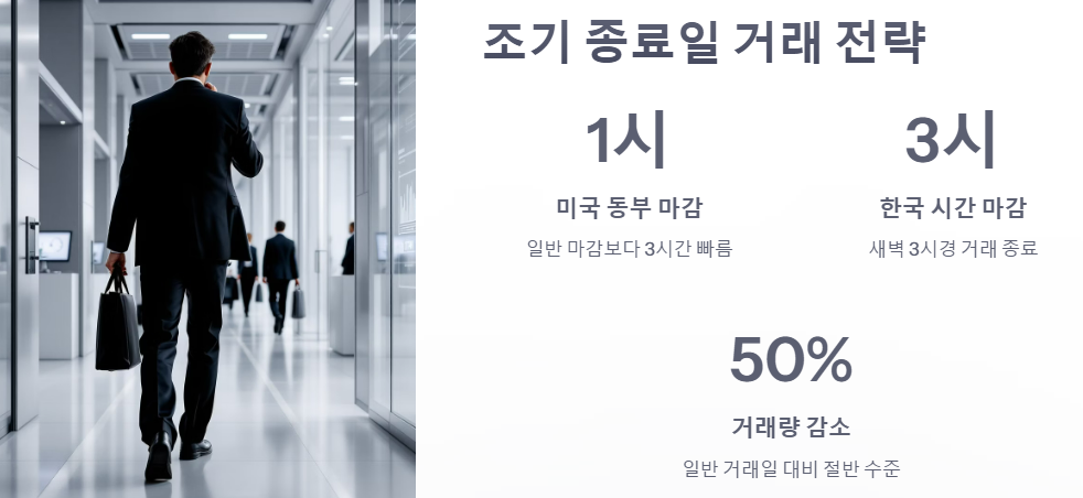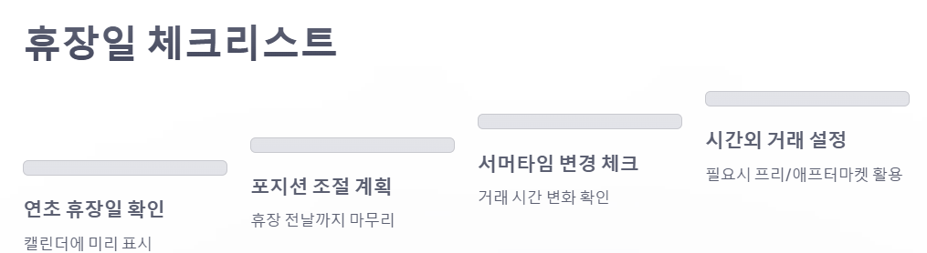 | 조기 종료일 유의 | 장 마감 시간이 다르므로 거래 마감 전에 포지션 정리 |