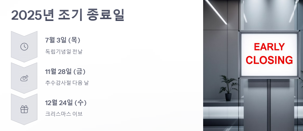 | 7월 3일 (목) | 독립기념일 전날 | 조기 종료 |