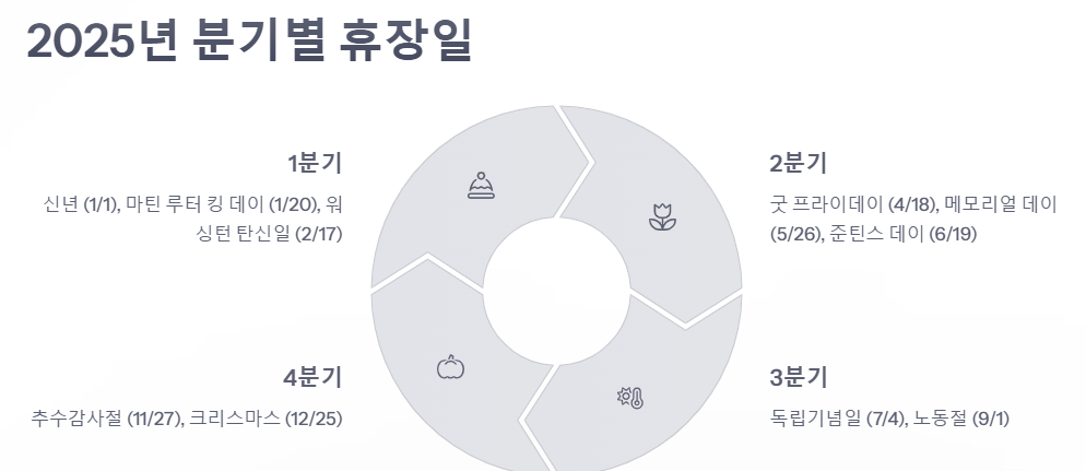 2025년 미장 휴장일 및 조기 종료일 표로 정리