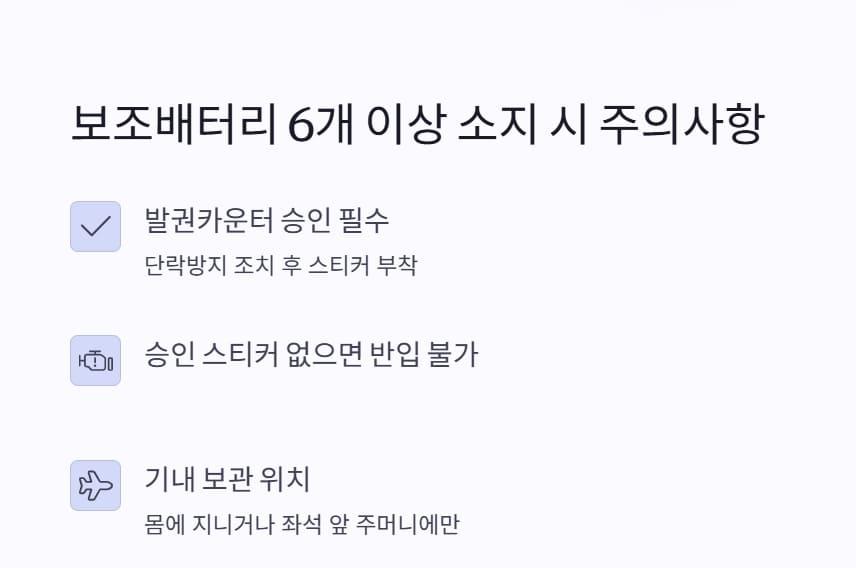 ⚠️ 보조배터리 6개 이상 소지 시 주의사항