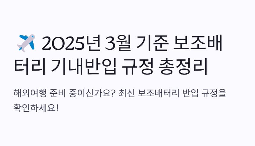 ✈️ 기내반입 가능한 보조배터리 추천 & 최신 반입 규정 총정리 (2025년 3월 기준)