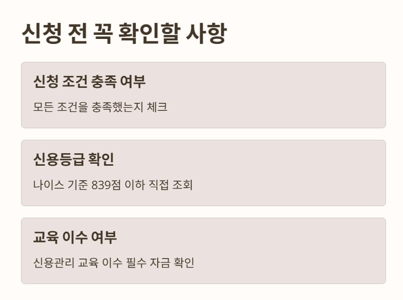 ✅ 신용취약 자금은 최소 1천만 원 이상부터 신청 가능하며, 과거 유사자금 신청 이력이 있다면 잔액 합산에 유의하세요.