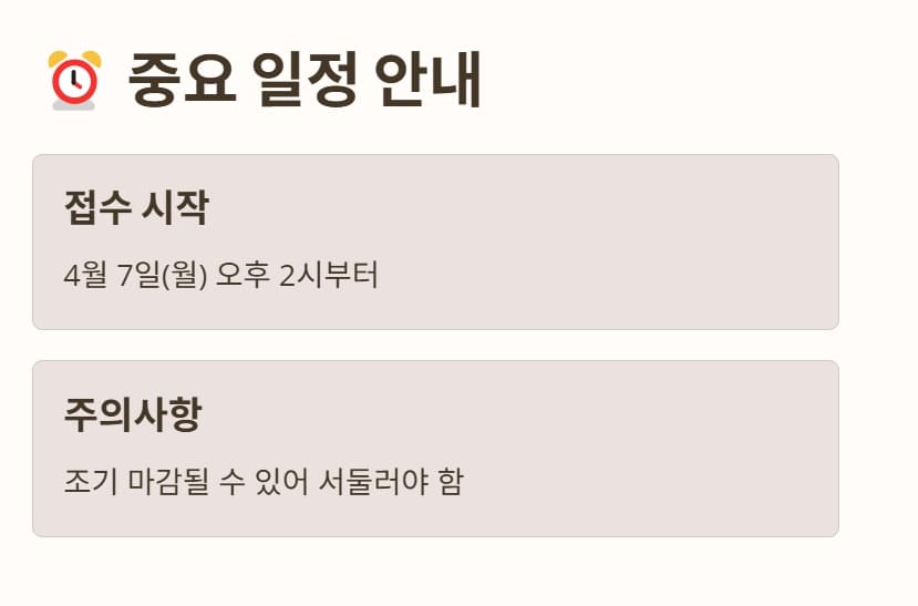 ⏰ 4월 7일(월) 오후 2시부터 접수 시작! 조기 마감될 수 있어 서둘러야 합니다.