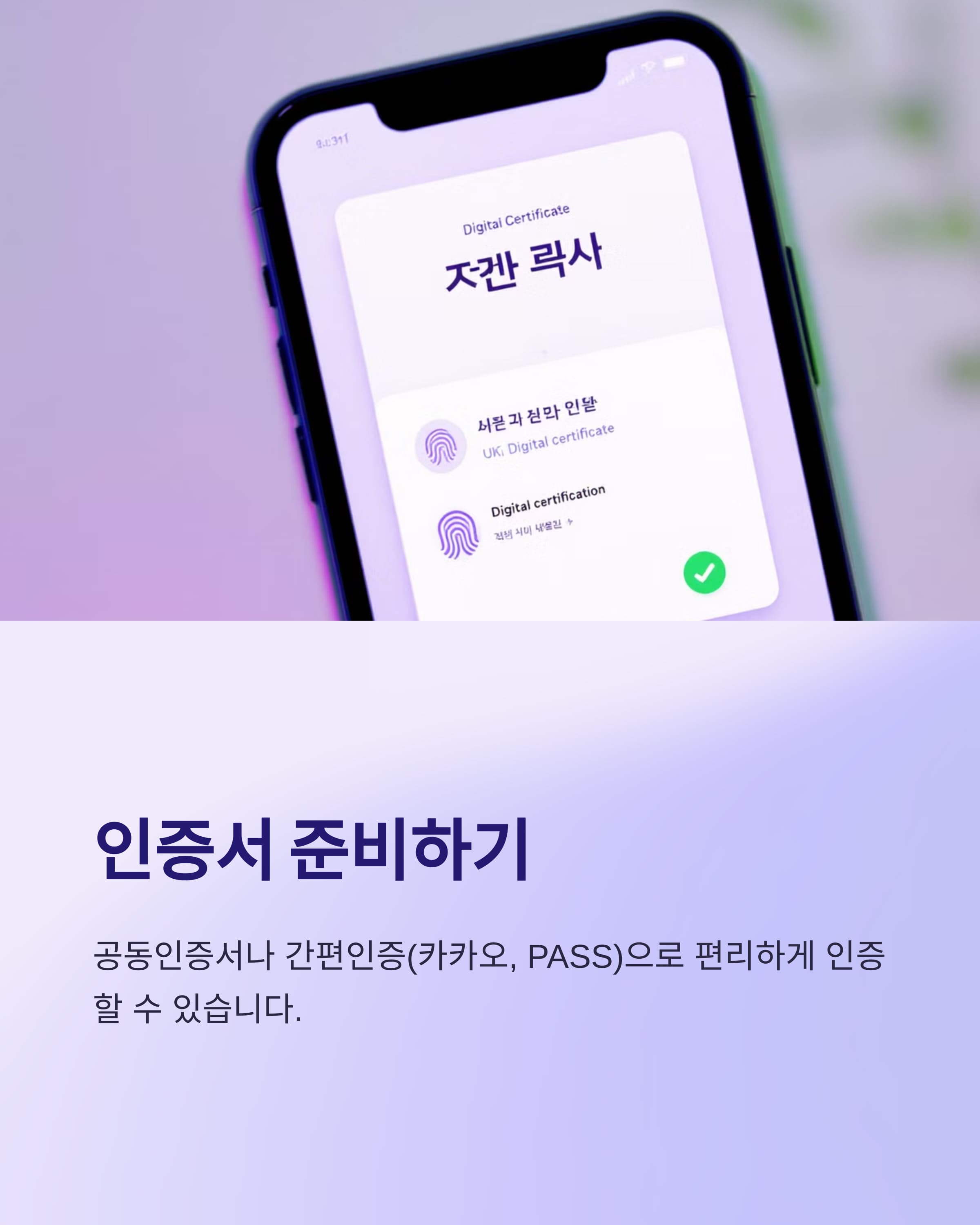 공동인증서 외에도 간편인증(카카오, PASS 등)도 지원돼서 부담 없어요.