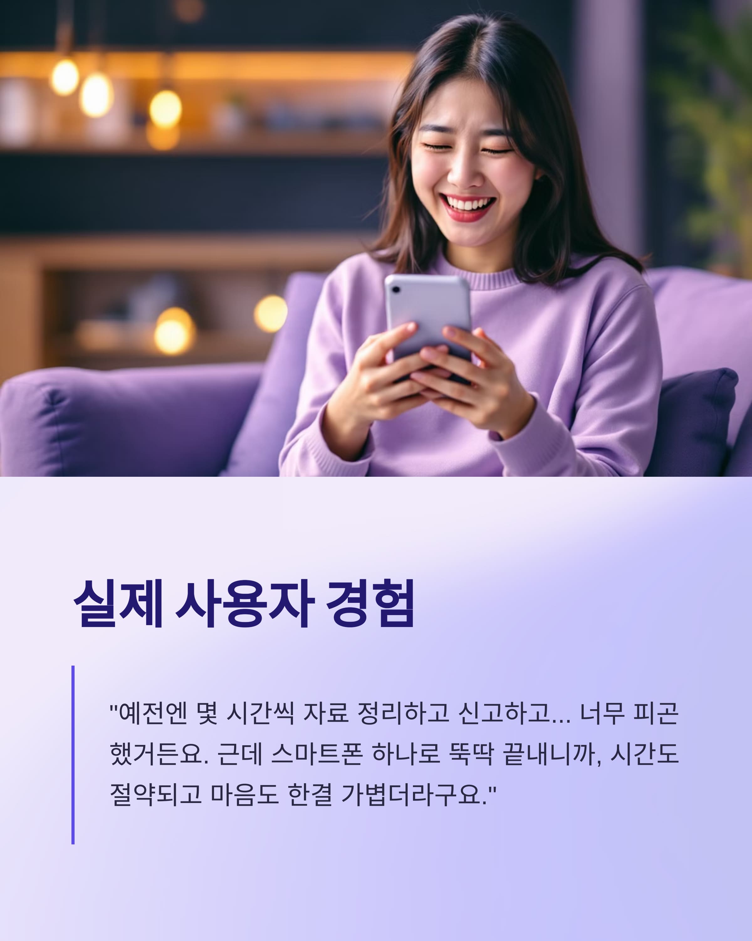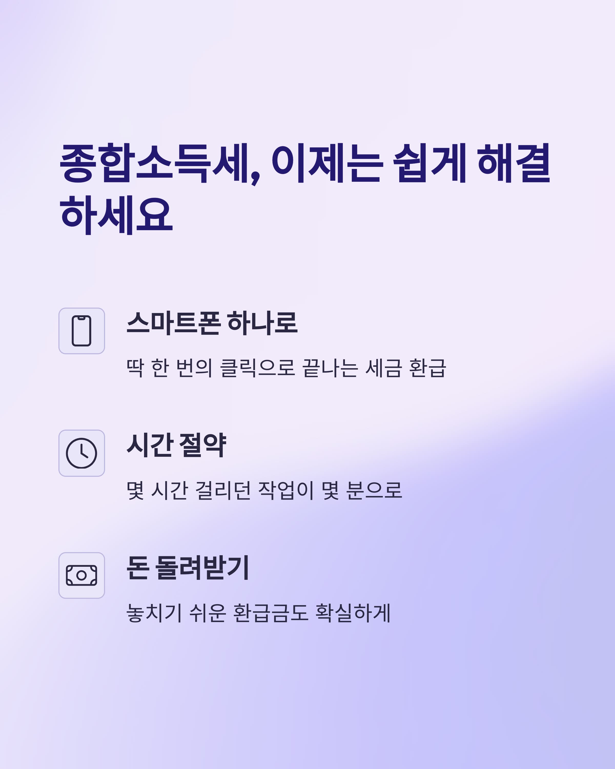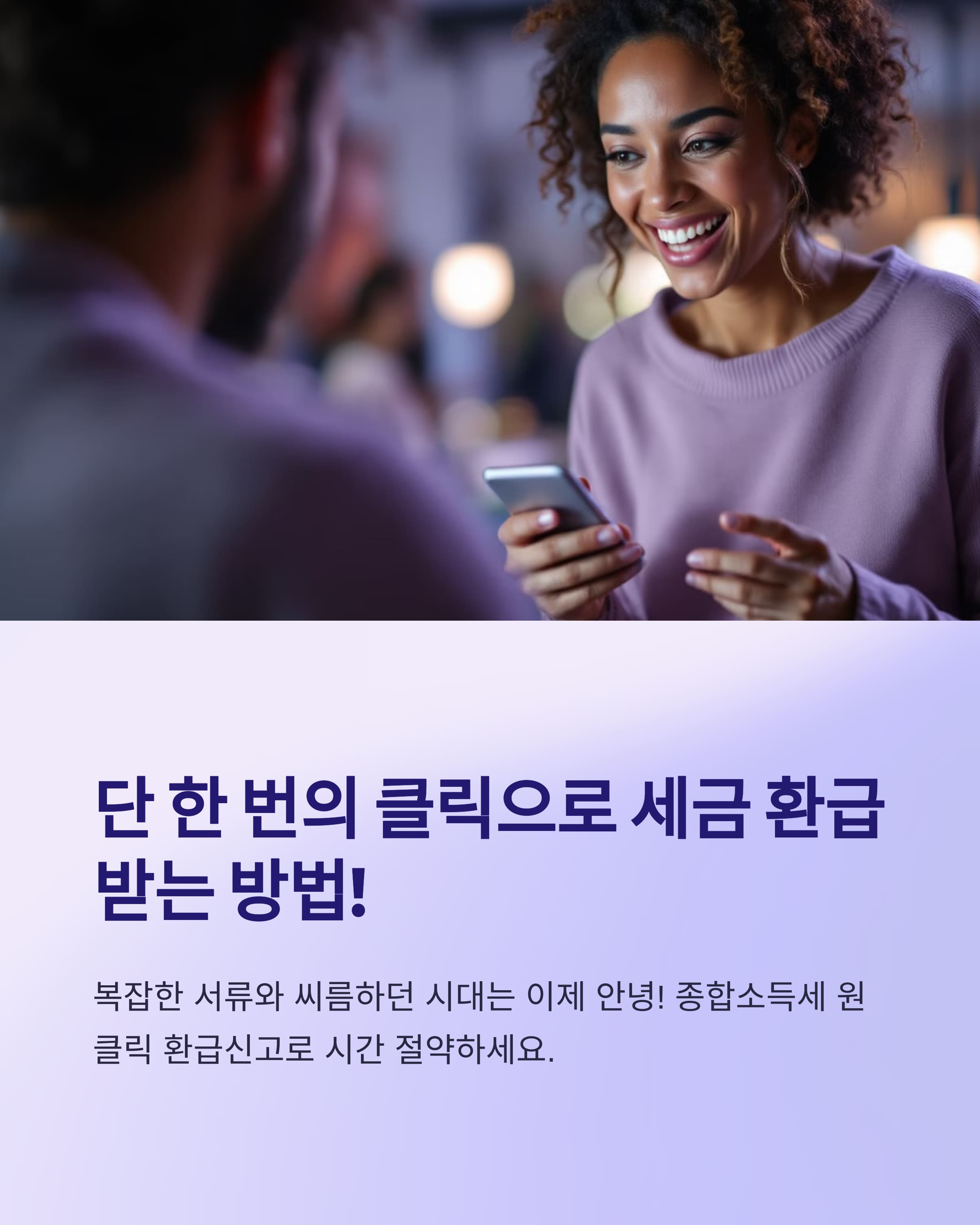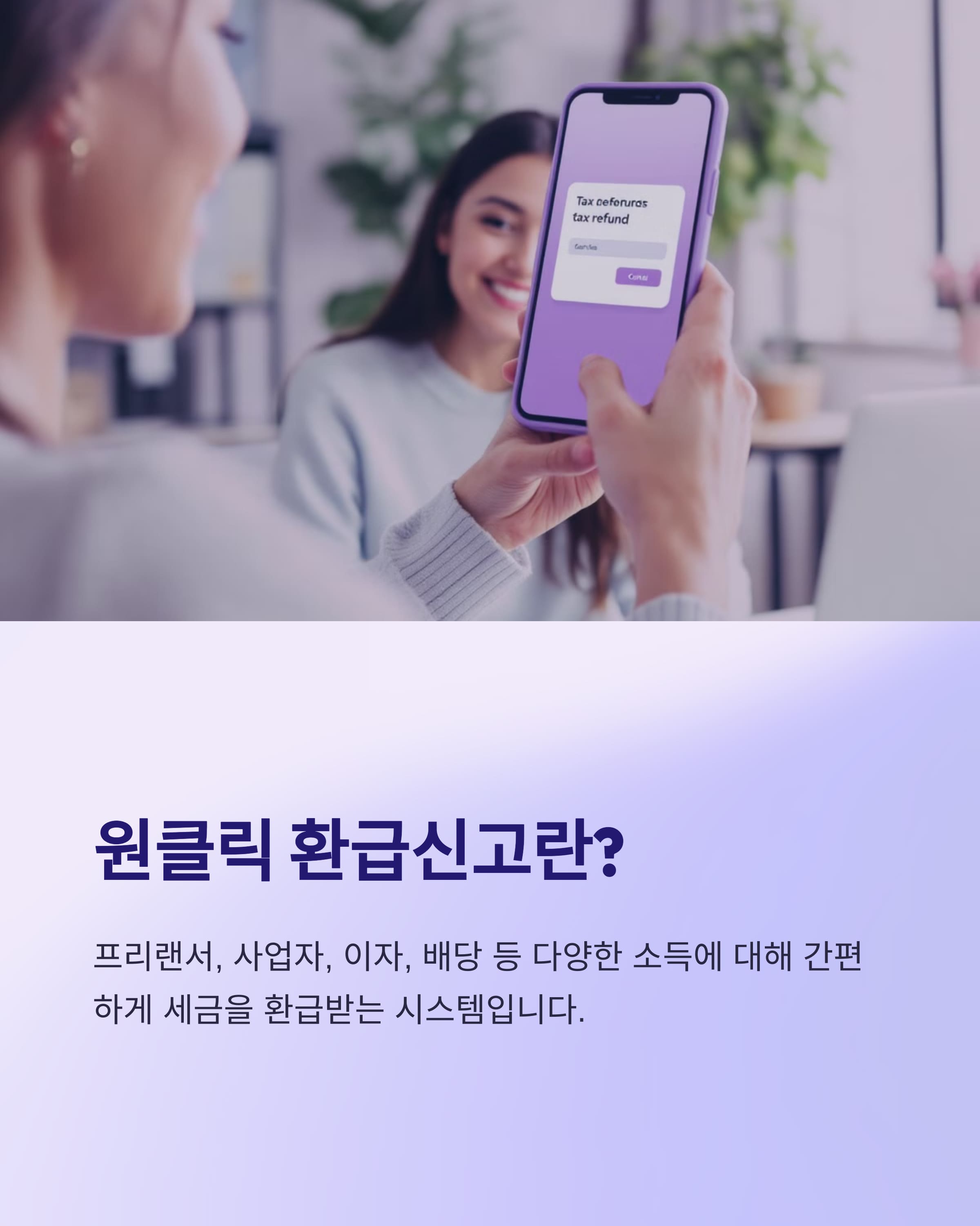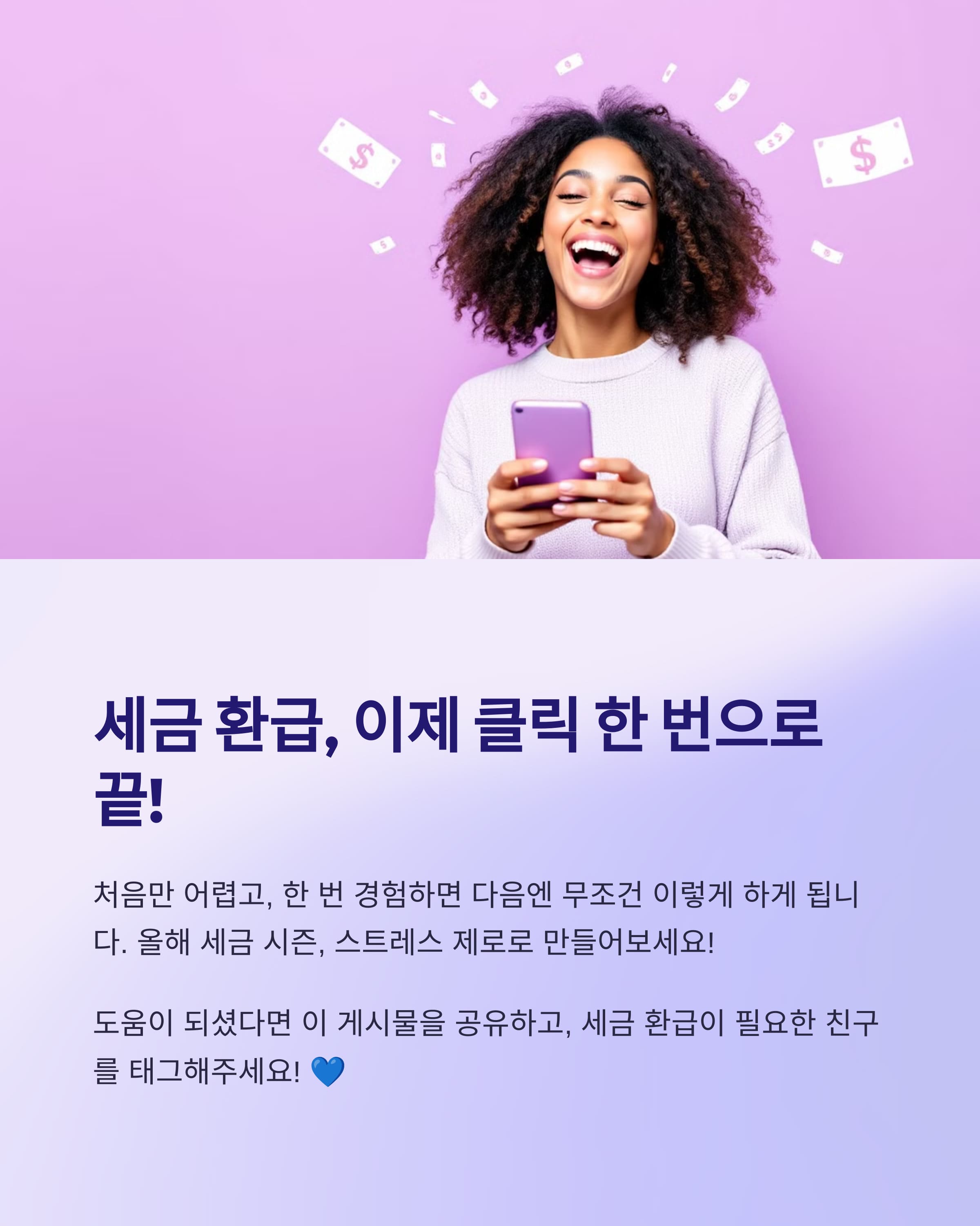 "단 한 번의 클릭으로 세금을 돌려받는 시대, 벌써 체험해보셨나요?" 복잡한 서류와 씨름하던 시대는 이제 안녕입니다.