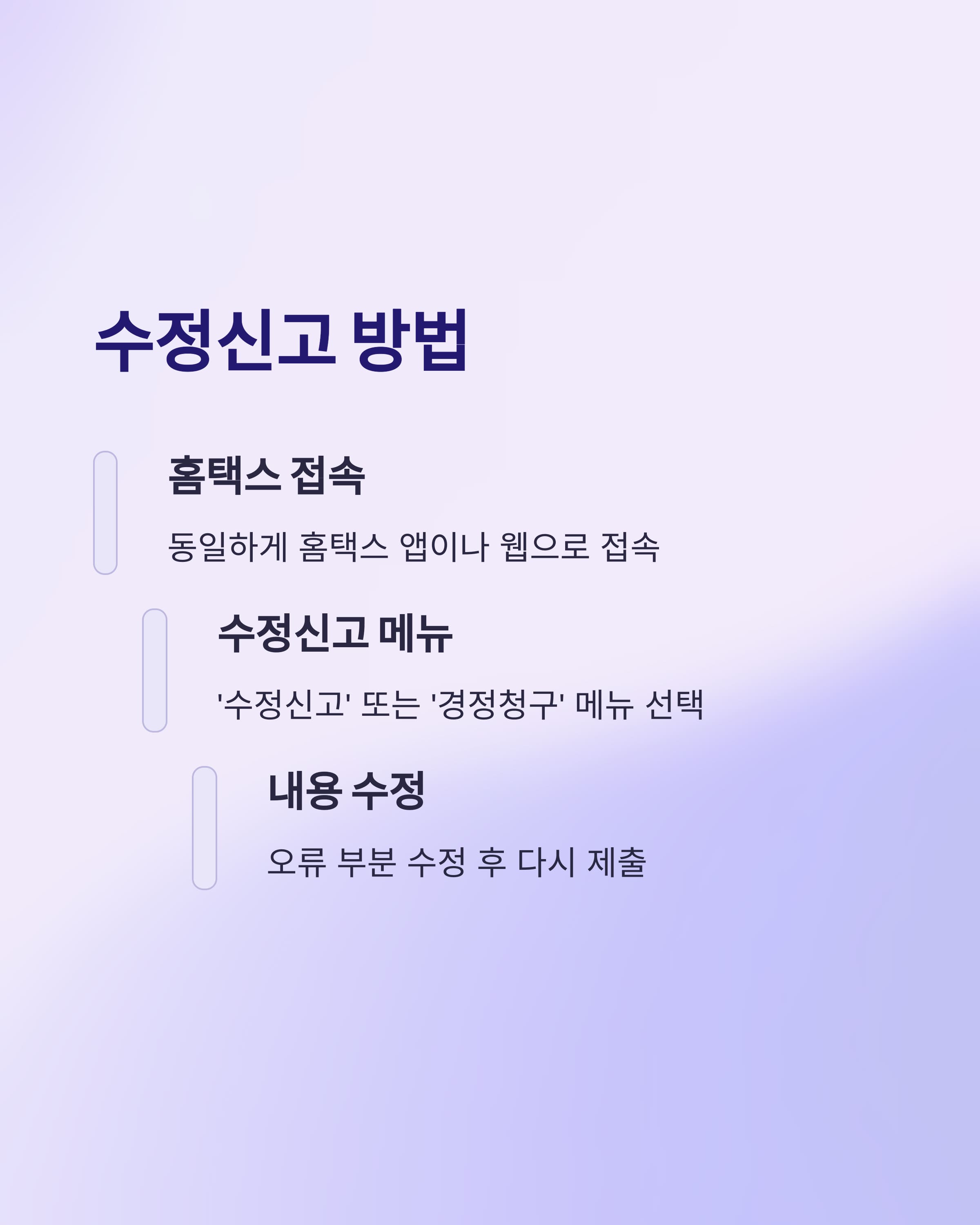 홈택스에서 '수정신고' 또는 '경정청구' 기능을 이용하면 바로 고칠 수 있어요.
