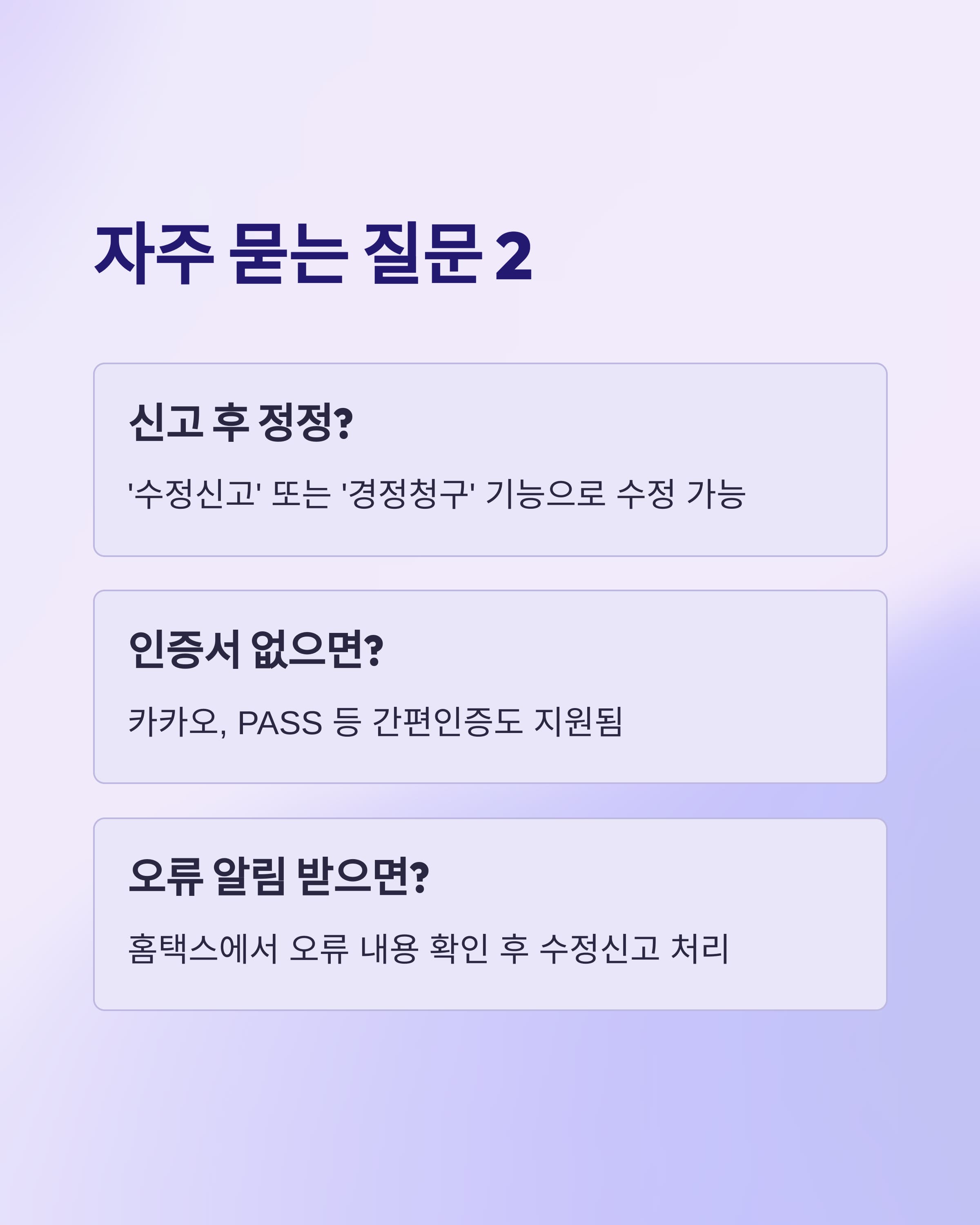 홈택스에 접속해 오류 내용을 확인한 뒤, 빠르게 수정신고로 처리하면 됩니다!