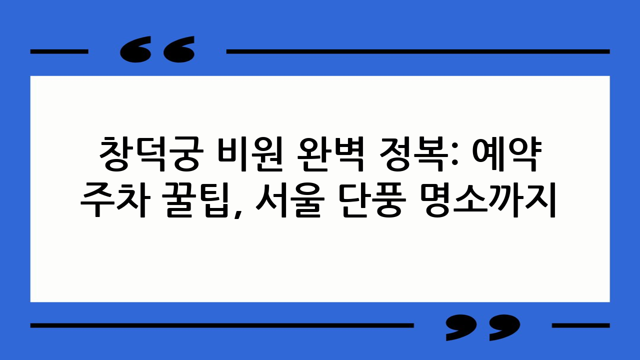 서울의 숨겨진 보석, 창덕궁 비원을 제대로 즐기기 위한 모든 정보를 담았습니다. 예약 방법부터 주차 꿀팁, 아름다운 단풍 명소 정보까지, 완벽한 나들이를 위한 가이드가 되어드릴게요. 저 역시 창덕궁과 비원을 사랑하는 사람으로서, 생생한 경험과 꿀팁을 아낌없이 공유하겠습니다!