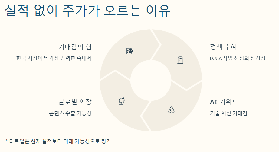 | 상승 재료 | D.N.A 정책, AI 콘텐츠 수출, 정치 테마 |