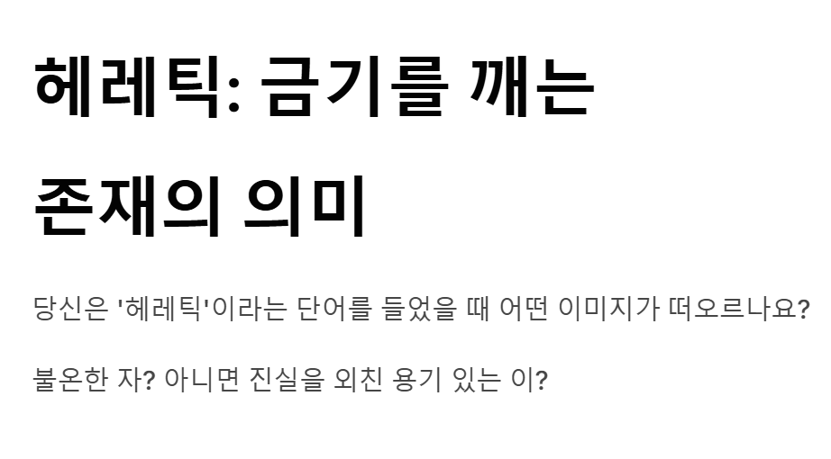 당신은 '헤레틱'이라는 단어를 들었을 때 어떤 이미지가 떠오르나요? 불온한 자? 아니면 진실을 외친 용기 있는 이?