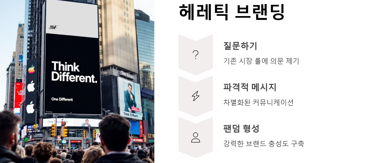브랜드 세계에서도 ‘헤레틱’은 점점 매력적인 개념으로 자리잡고 있어요. 기존 시장의 룰을 깨고, 파격적인 메시지로 소비자에게 다가가는 전략. 바로 ‘헤레틱 브랜딩’이라고 부를 수 있죠. 애플이 "Think Different"를 외쳤던 이유도, 나이키가 사회적 메시지를 전면에 내세운 이유도 결국 ‘헤레틱 마케팅’의 일환입니다.