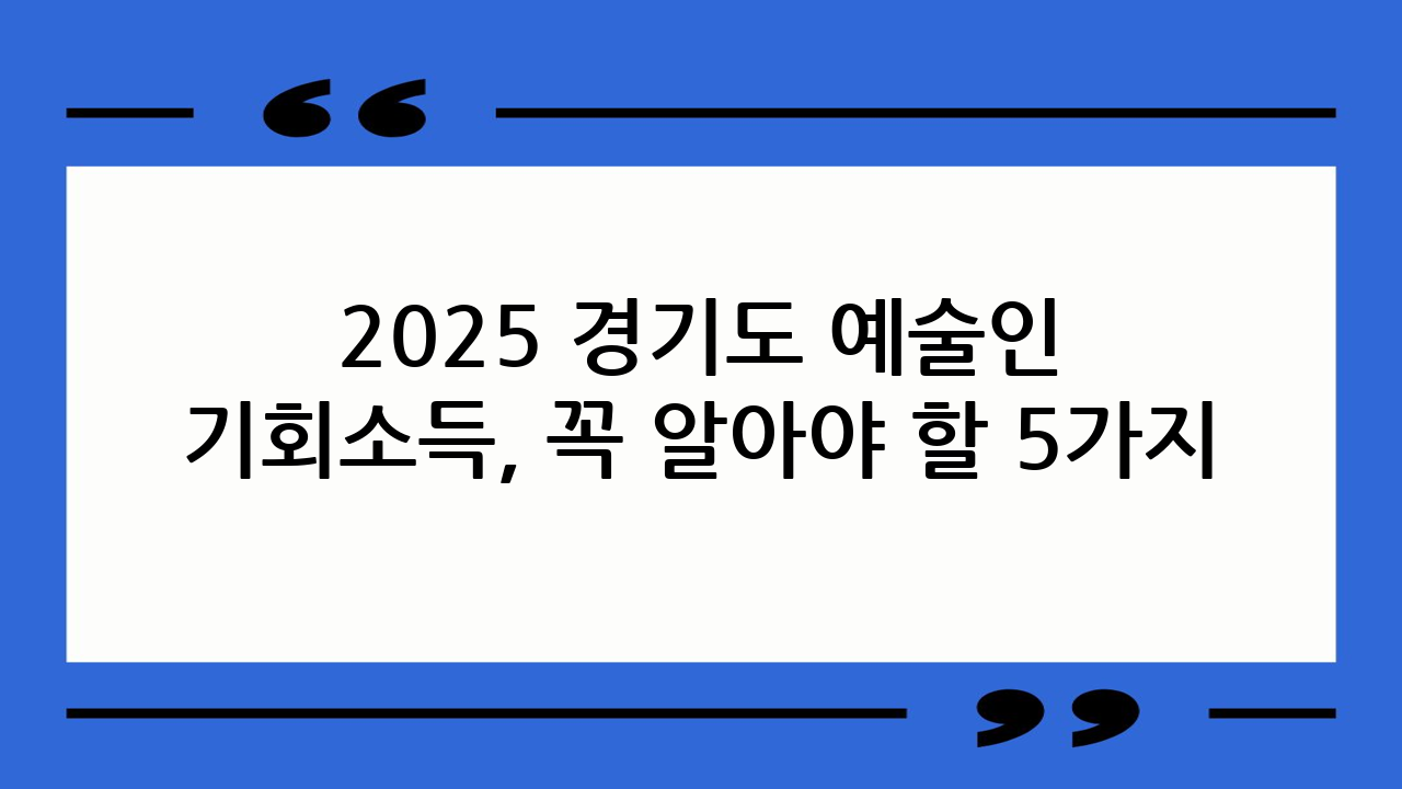2025 경기도 예술인 기회소득, 꼭 알아야 할 5가지