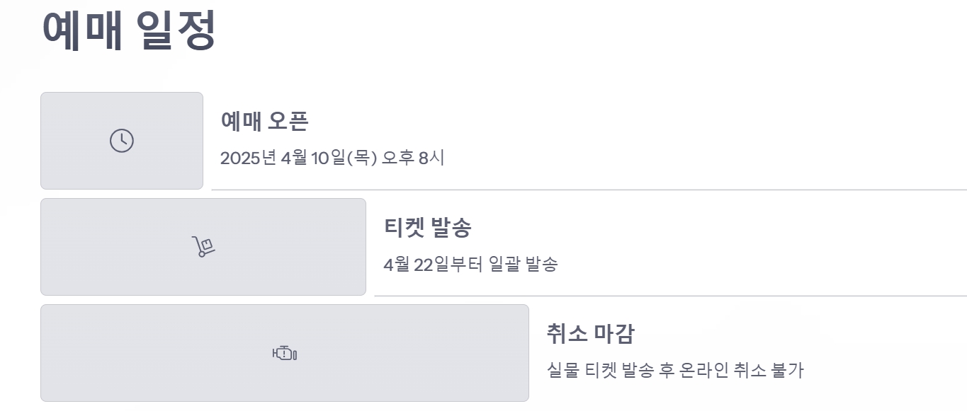 | 예매 일정 | 2025년 4월 14일(월) KREAM 예매 오픈 예정 |