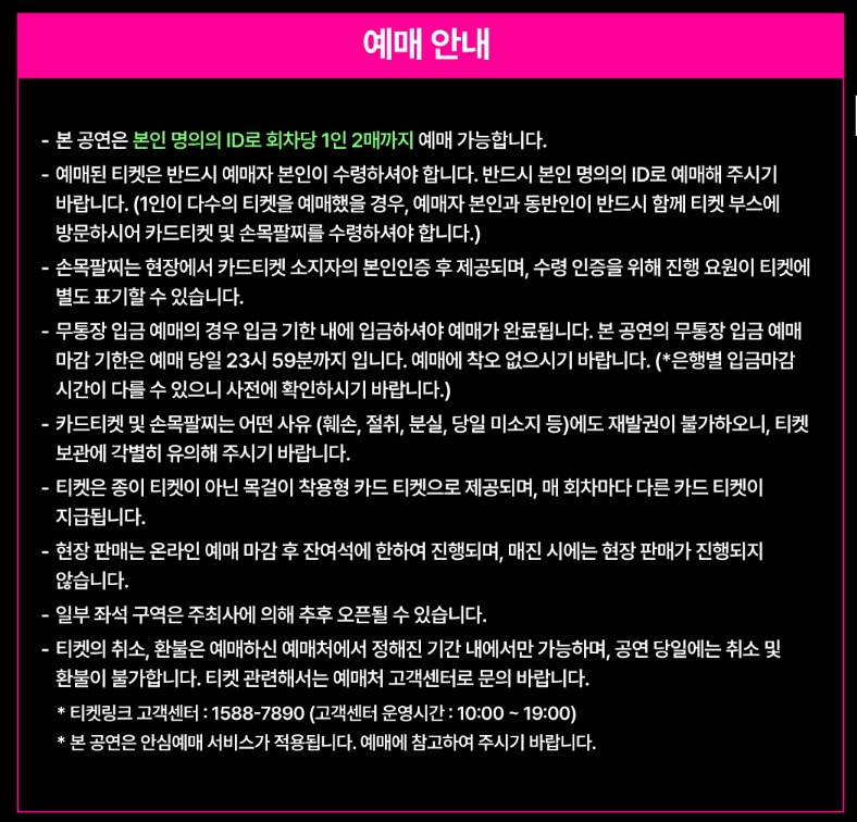 - 공연은 회차별로 다르며, 해당 날짜 티켓만 입장 가능해요.