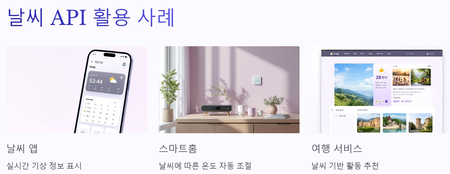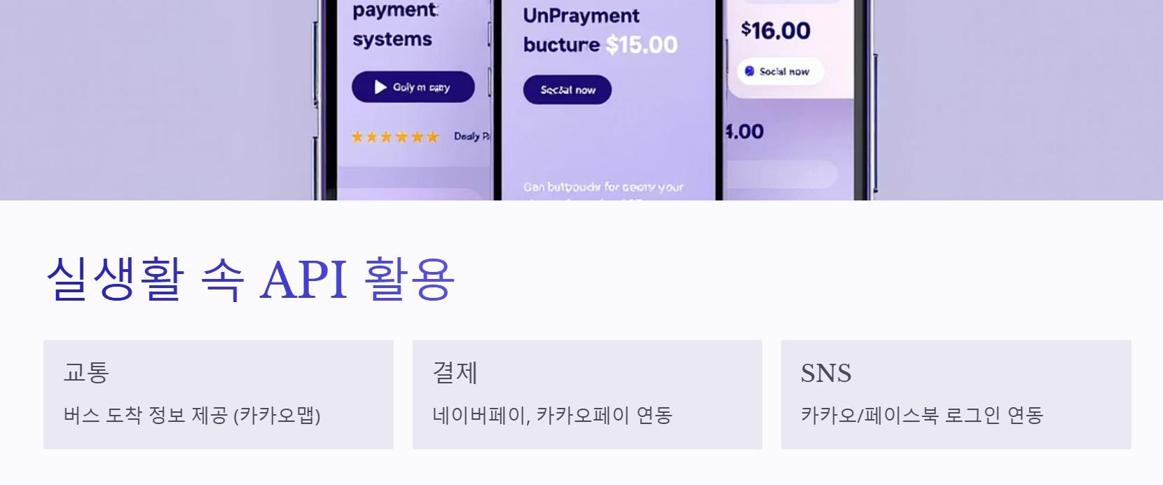 API는 우리 생활 곳곳에 숨어 있어요. 사실 모르고 지나쳤던 것도 많을걸요? 다음 표를 보면 얼마나 다양하게 활용되는지 알 수 있을 거예요.