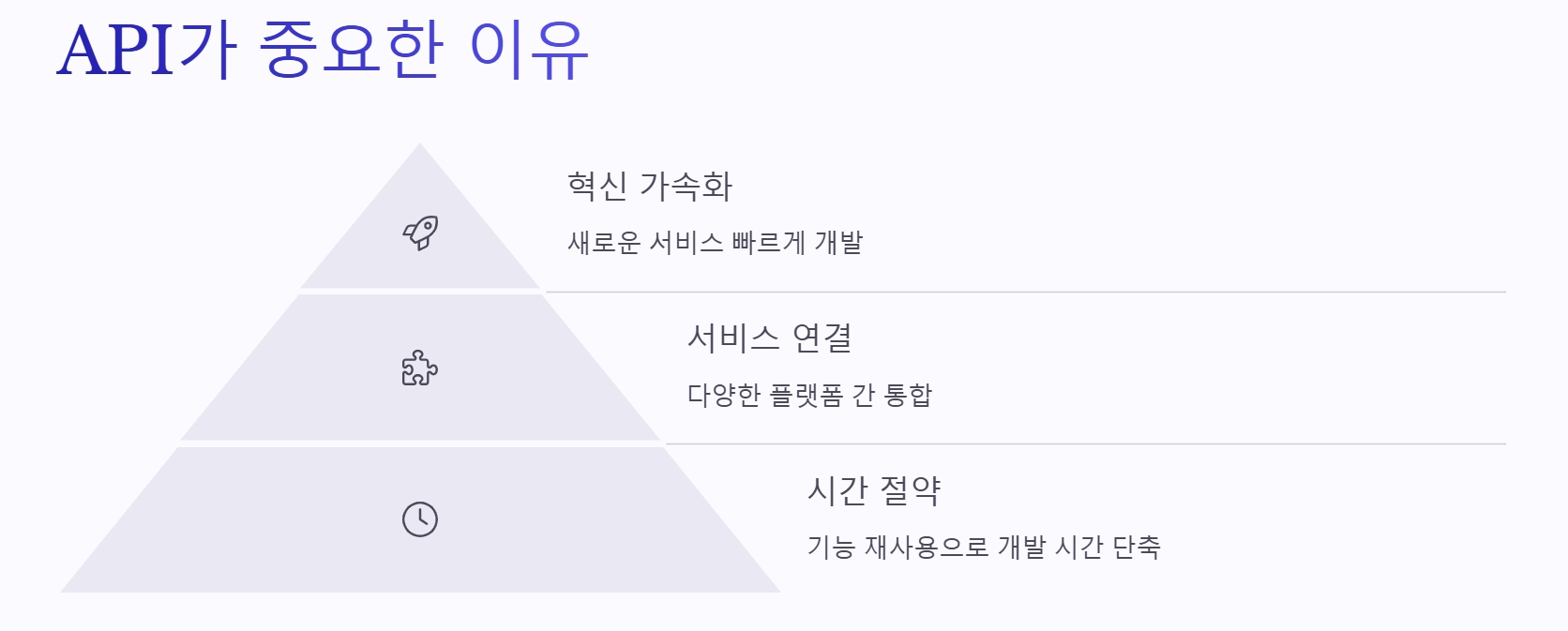 왜 API가 이렇게 중요할까요? 이유는 간단해요. 요즘 세상은 연결 중심이잖아요. 앱, 웹, 장비, 서비스 다 서로 말이 통해야 해요. 이 때 통역사 역할을 해주는 게 바로 API! 우리가 앱에서 날씨 확인하고, 배달 앱으로 주문하고, SNS로 로그인하는 모든 순간에 API가 중간에서 다리를 놓고 있는 거죠. 없으면? 불편하고 답답해서 아무것도 못 해요.