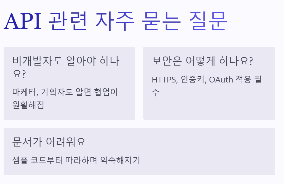 이제 API가 뭔지, 왜 중요한지, 어디에 어떻게 쓰이는지 감이 좀 오시나요? 사실 저도 처음엔 '이게 왜 이렇게 복잡하지?' 했었는데, 지금은 없으면 안 되는 도구처럼 느껴져요. 꼭 개발자가 아니어도 API는 우리가 기술을 이해하고, 더 나은 선택을 하기 위해 알아야 할 언어 중 하나인 것 같아요. 혹시나 더 궁금한 게 있다면 댓글이나 메시지로 편하게 물어봐 주세요. 여러분의 질문이 또 다른 콘텐츠로 이어질지도 몰라요. 😊