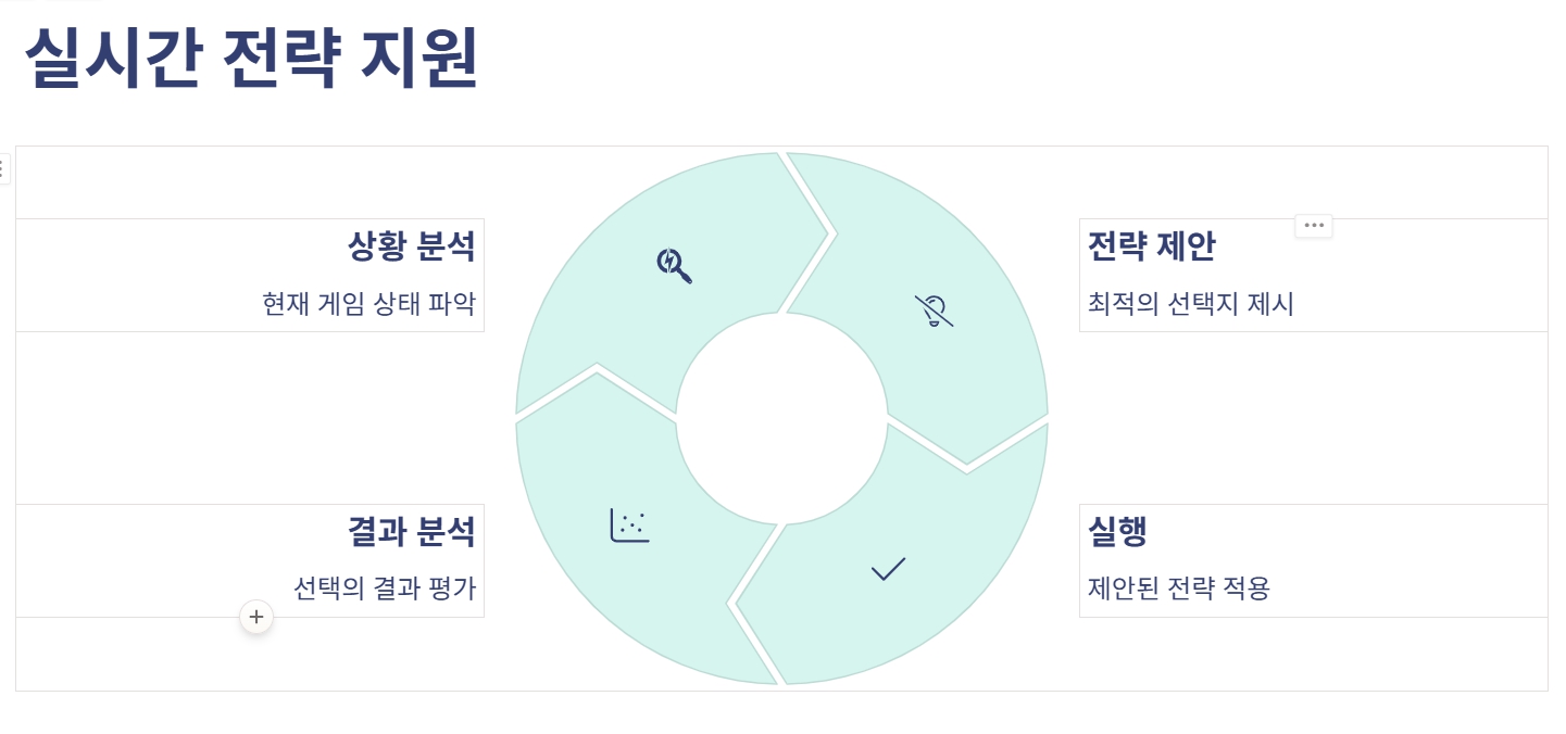 - 게임 중 실시간으로 전략적 선택을 도와줌