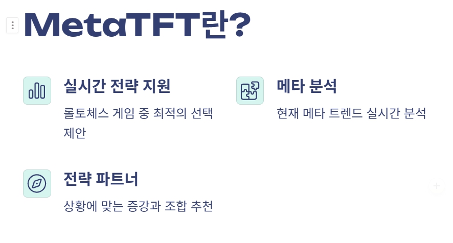 MetaTFT는 단순한 정보 툴을 넘어서, 실제 게임 플레이에 직접적인 영향을 주는 여러 기능을 제공합니다. 대표적인 기능은 아래와 같습니다.