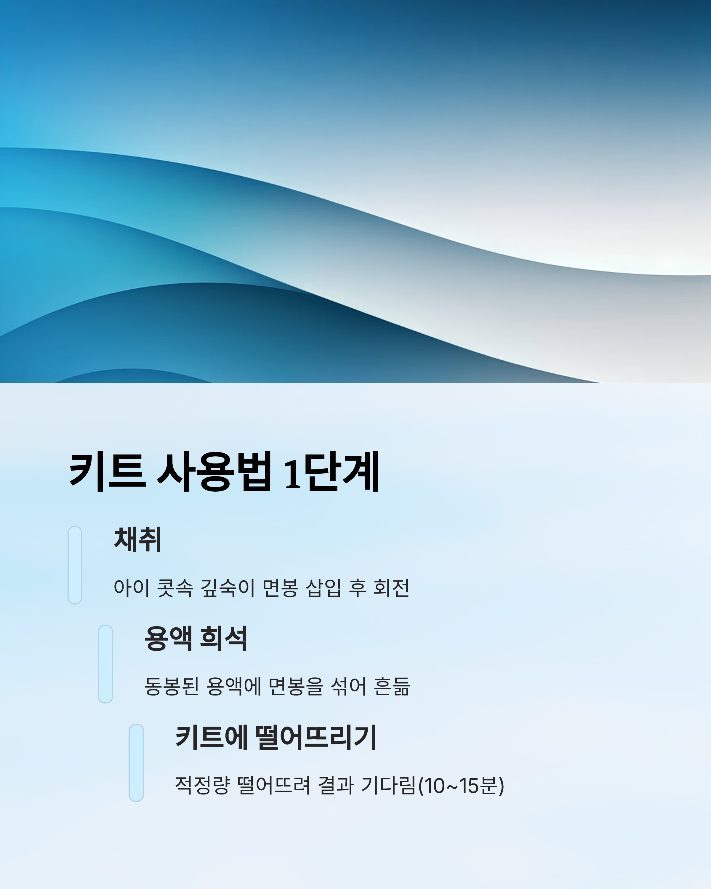 | 3. 키트에 떨어뜨리기 | 적정량 떨어뜨려 결과 기다림(10~15분) |
