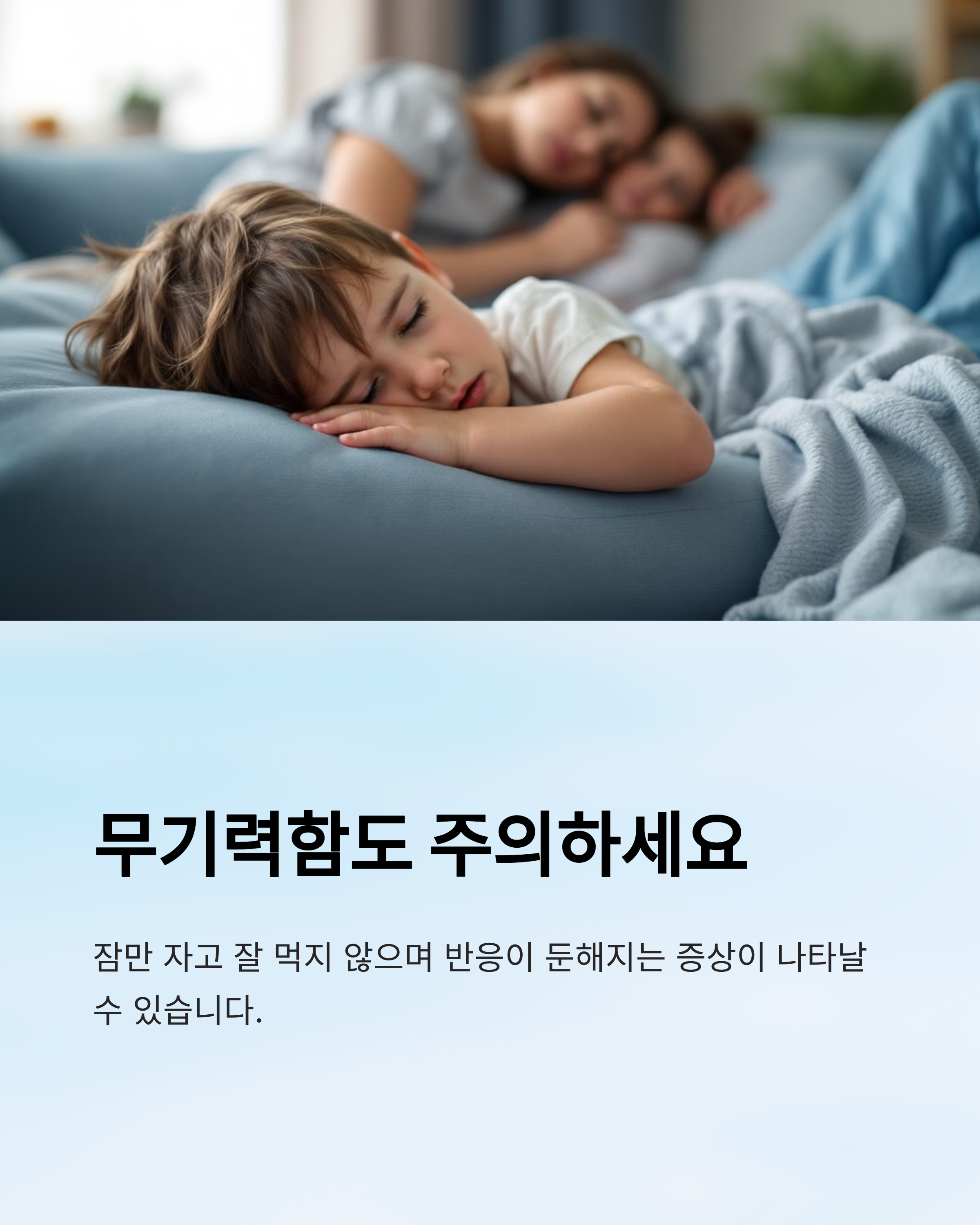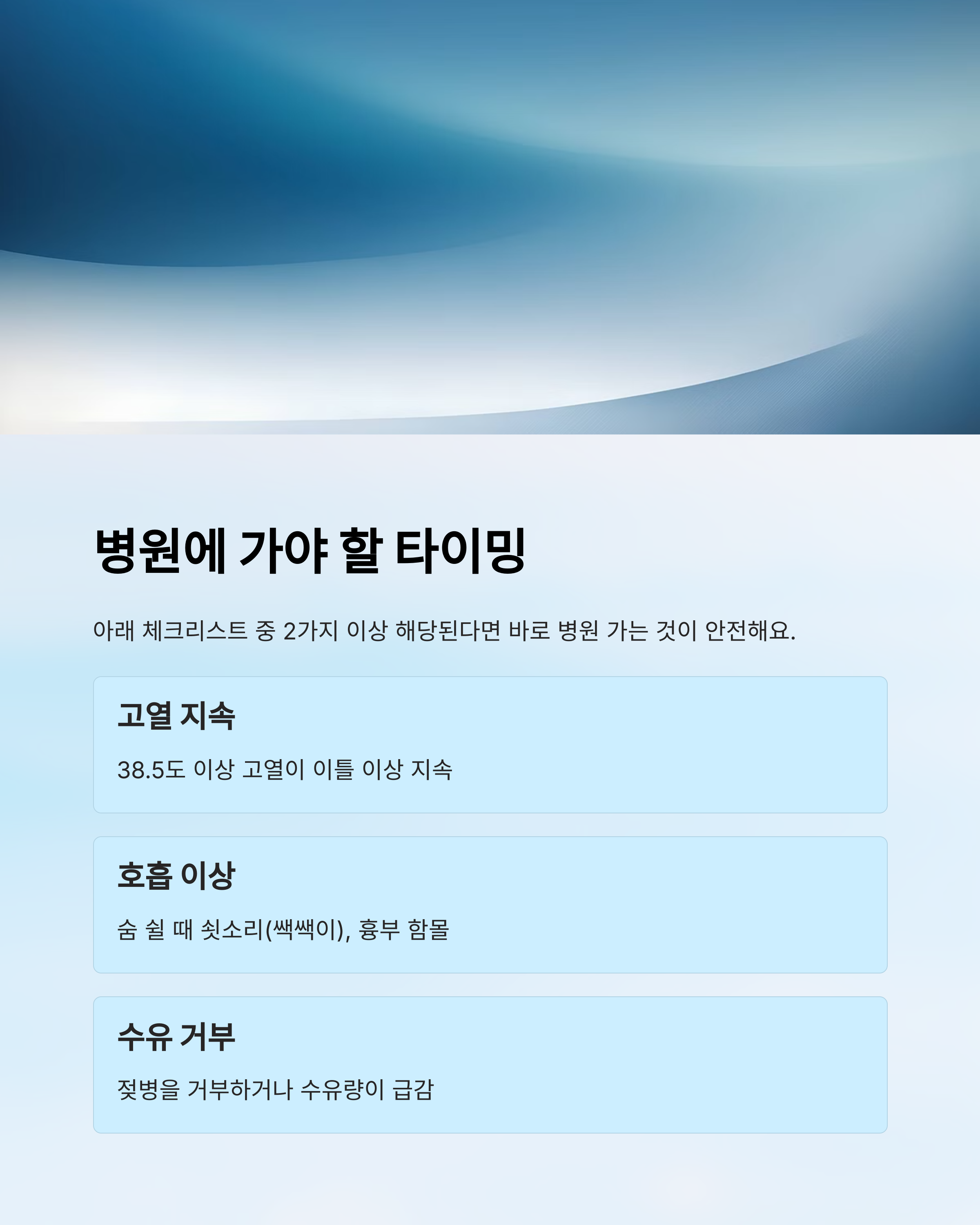 | "아이 호흡을 자주 관찰하세요." | 코막힘이나 숨소리가 평소와 다르면 바로 진료 |